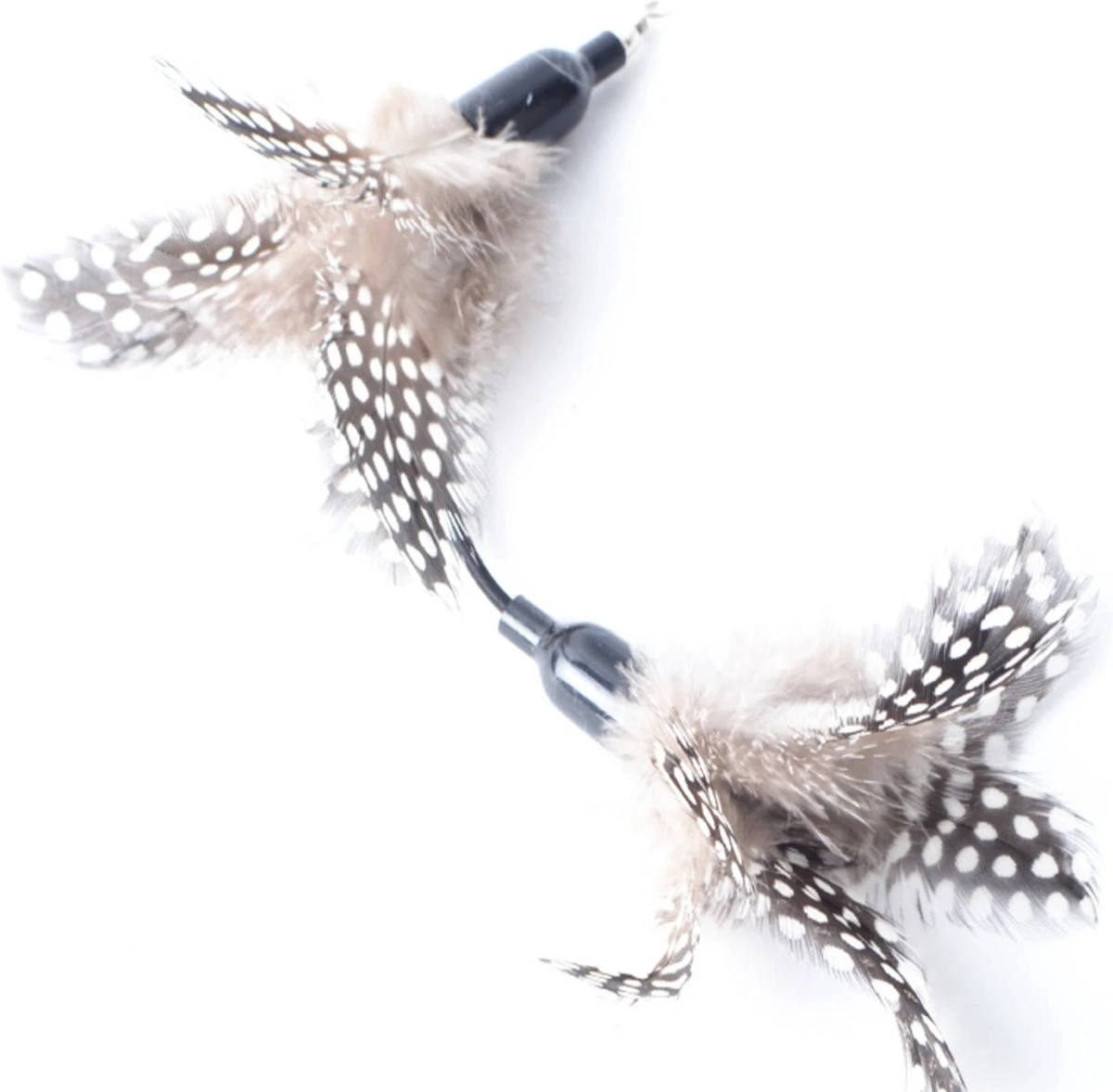 Uw kat haalt veel meer uitdaging uit deze speelhengel. Dit komt door de natuurlijke vliegbeweging van het veertje. Hiermee daag je de kat uit om zijn jachtinstinct te gebruiken. Jouw viervoeter raakt in een korte periode enorm veel energie kwijt.