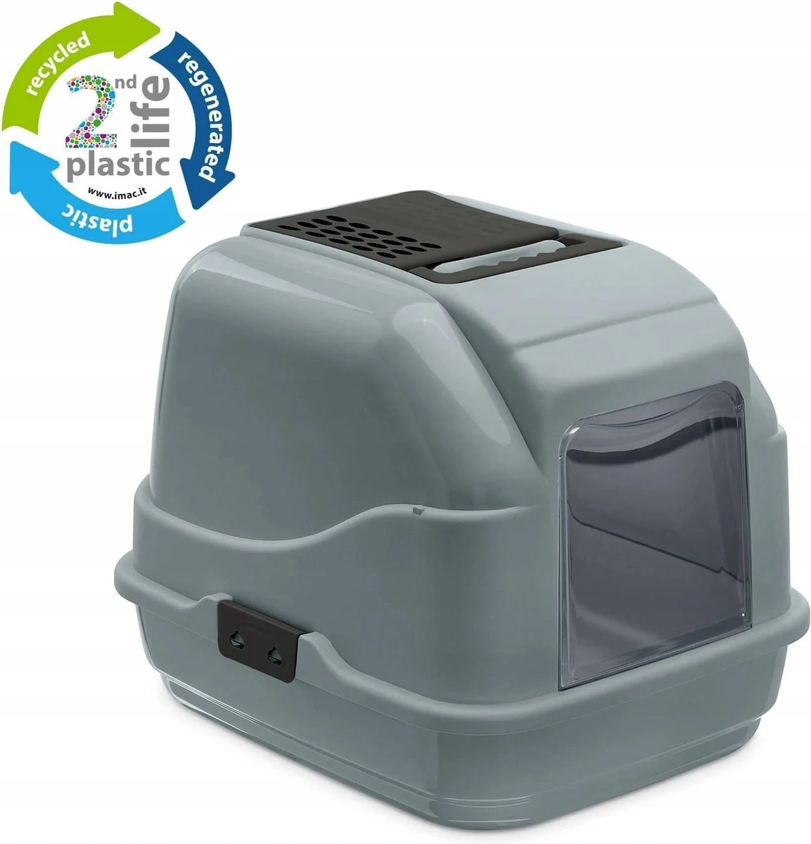 Imac heeft voor deze kattenbak gebruik gemaakt van Second Life plastic: dit is plastic dat is gerecycled en dus veel duurzamer en milieuvriendelijker is. Het plastic is gemaakt van gereinigd, gerecycled huishoudelijk plasticafval en ook weer recyclebaar. Goed voor jou, je kat en het milieu dus!