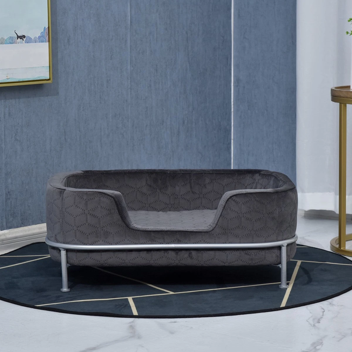PawHut Hondenbank Met Rugleuning Huisdierenbank Met Metalen Poten Hondenbed Kattenbank D04-157