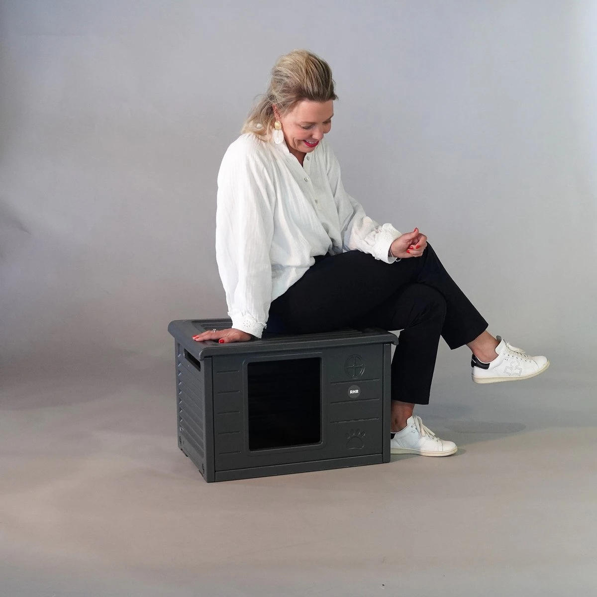 Het kattenhuis is weersbestendig en eenvoudig schoon te maken en zeer degelijk gemaakt, zoals u op de foto’s kan zien. Door zijn mooie donkergrijze kleur zal het kattenhuis op veel plekken erg mooi staan.
