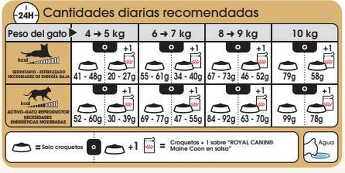 Kan tot 10 kg wegen en 1 meter lang worden, speelt en jaagt en heeft daarom veel ruimte en energie nodig. De Maine Coon pakt zijn voedsel voornamelijk op met de bovenkant van zijn tong en heeft de gewoonte alles zonder kauwen door te slikken.